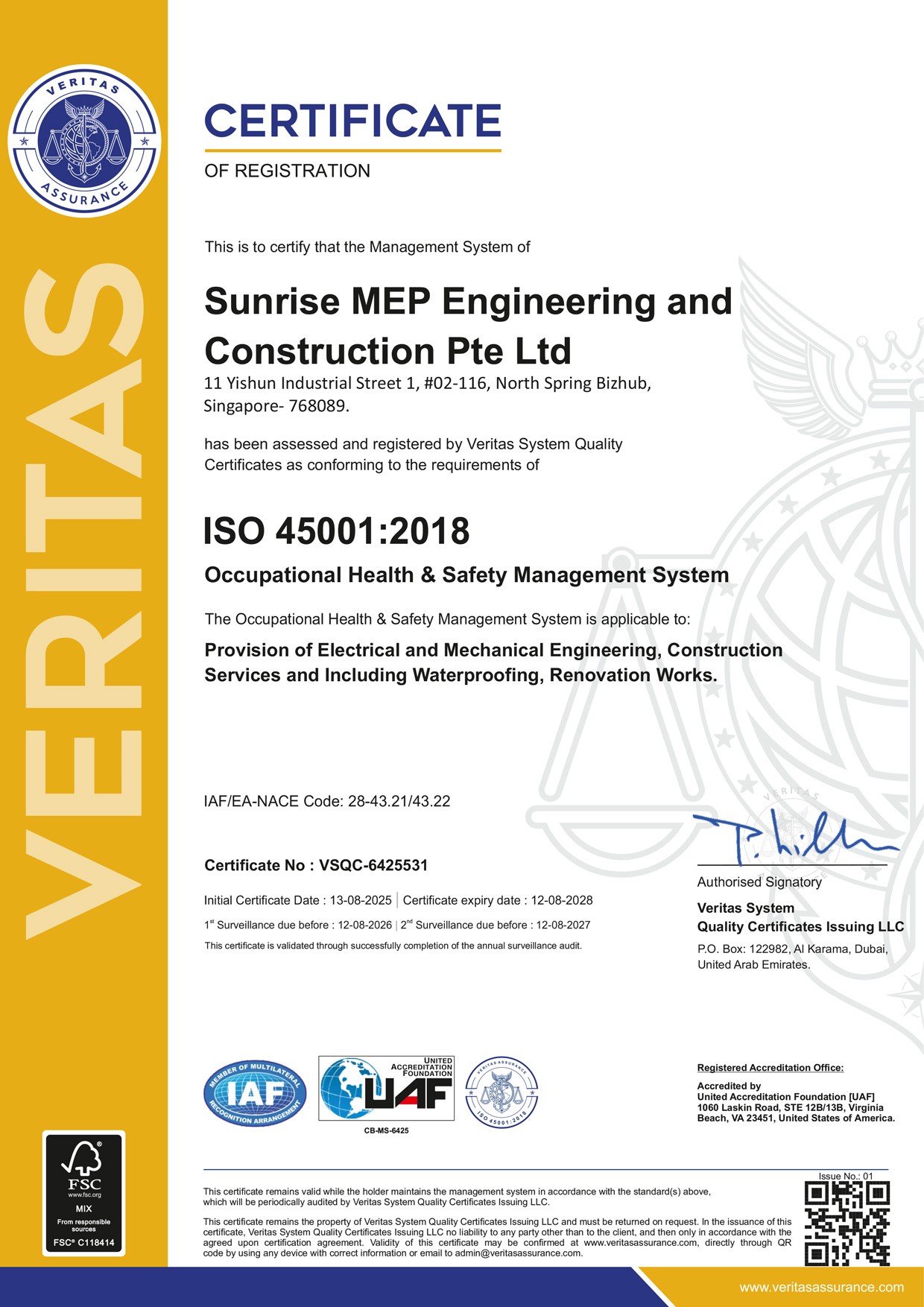 At Sunrise MEP Engineering & Construction Pte Ltd, we take pride in maintaining the highest standards of professionalism, safety, and quality in all our projects. Our certifications reflect our commitment to excellence, ensuring that we adhere to industry best practices and safety regulations.